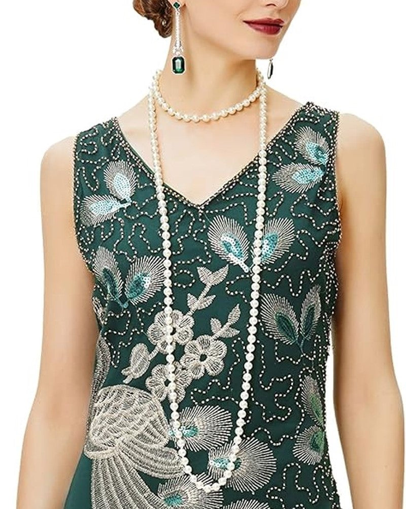 This stunning 1920s Vintage Peacock Sequined Dress is perfect for a variety of occasions including weddings, tea parties, cocktail events, church days, the Kentucky Derby Race, 1920s Gatsby parties, carnivals, Halloween, and other special celebrations.